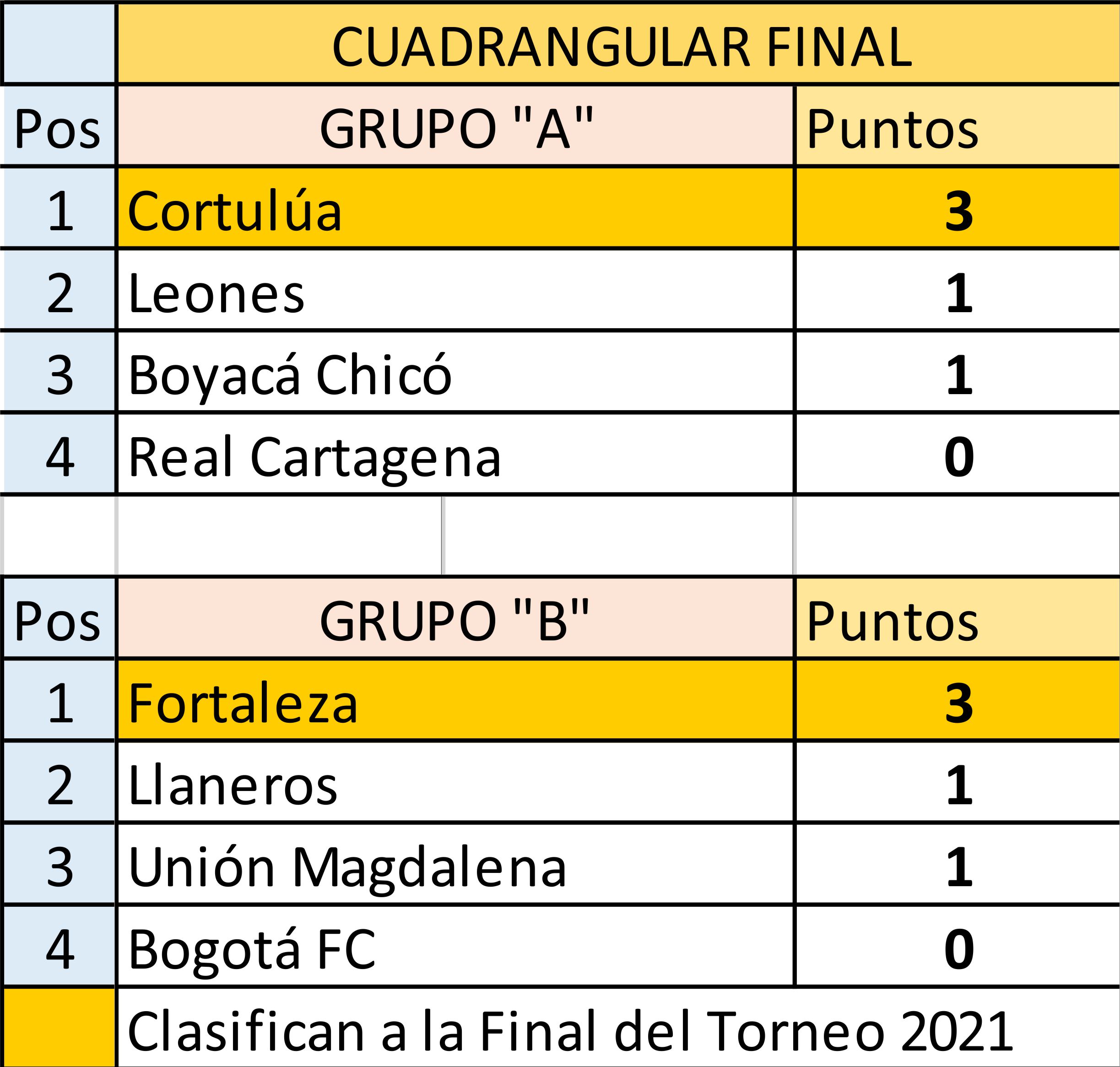 -Bogotá FC 1 (Yimmi Congo) Fortaleza 4 (Carlos Lucumí-2-, y Luis Sandoval-2- uno de penal)